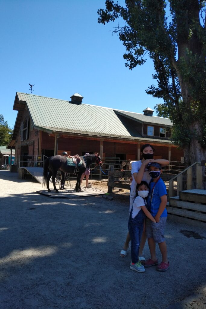 Bố mẹ đưa tôi đi cưỡi ngựa ở trang trại Southland. Con ngựa rất to, khi ngồi trên nó tôi cảm giác rất cao, vì thế tôi thấy sợ.