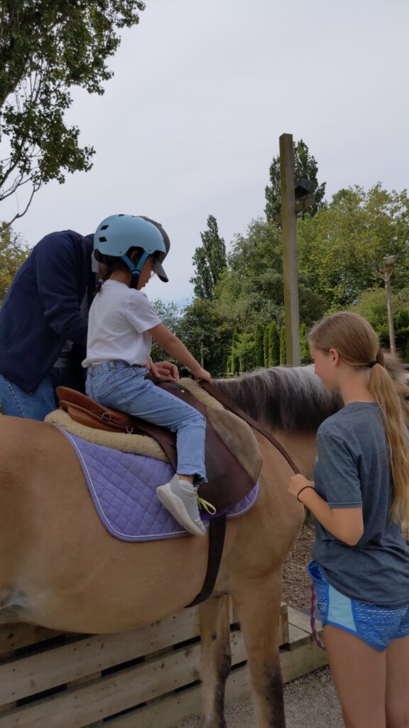 Hi, I’m here to tell you about my pony ride. My parents took me to Southland Farm. The horse was very big. When I sat on a horse, it was so tall that I felt very scared!