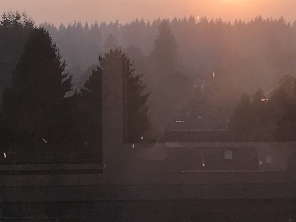 Mấy ngày nay, Mĩ đang bị cháy rừng và khói bay đến tận Vancouver làm bầu trời mờ mịt.