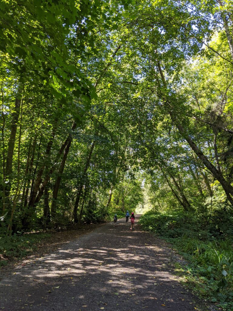 Đạp ở trong rừng cũng rất là khó và vui. Nhưng lâu lâu tôi sẽ phải dừng lại để chờ cho mẹ và người bạn của mẹ đi bộ đến. Đoạn đường nào dốc quá, tôi phải dắt xe.