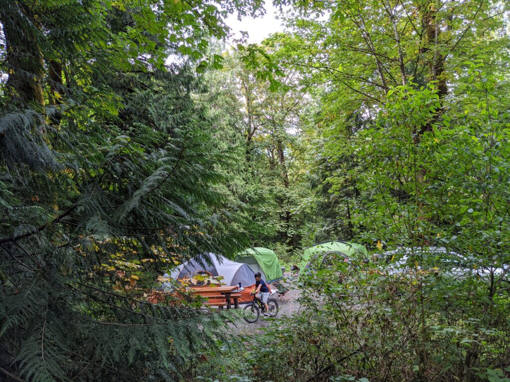 Lúc mọi người tới công viên hồ Cultus, gia đình tôi mất 1 tiếng để dựng lều và bơm đệm hơi. Sau đó, tôi và Z lấy xe đạp rồi đi lượn một tí. Vì tôi đã từng ngã xe đạp (nếu bạn chưa đọc bài ‘Vết sẹo cuộc đời’, hãy ấn vào đây), tôi đi thật cẩn thận. Đi thật chậm và luôn luôn nhìn đường. Tôi nghi dằng khi đi về, phanh của xe đạp tôi sẽ bị mòn?.