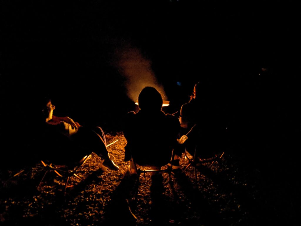 Ms T.’s family had to leave early because she had something the day after. So when we were getting ready for dinner, she was packing up for stuff. After dinner, I got to try the hammock that Ms T. brought. At first, I was scared that the hammock might rip because it’s been 5+ years since I ever went on one. Also because there was going to be me and Z on it. We were only planning to lay in the hammock but S had different plans.
