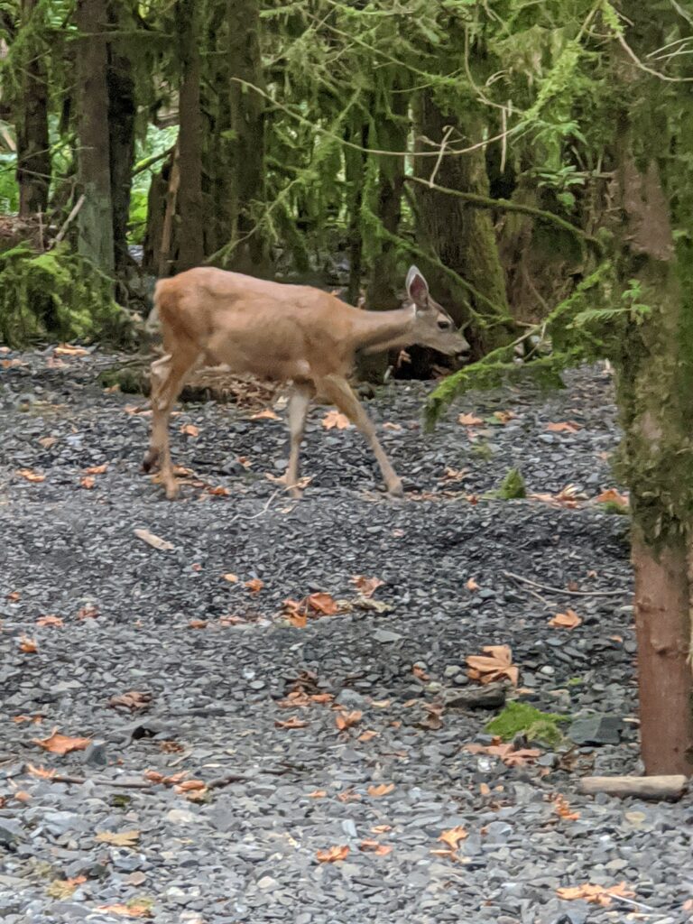 Sau đó, Z và tôi đi vào rừng để tìm con nai! Và thật may mắn, bọn tôi nhìn được một con nai mẹ! Chúng tôi thấy thật bất ngờ khi nhìn thấy con đây. Nhưng chúng tôi chỉ đứng từ xa vì tôi không muốn làm nó sợ (cũng có thể vì chúng tôi hơi sợ)