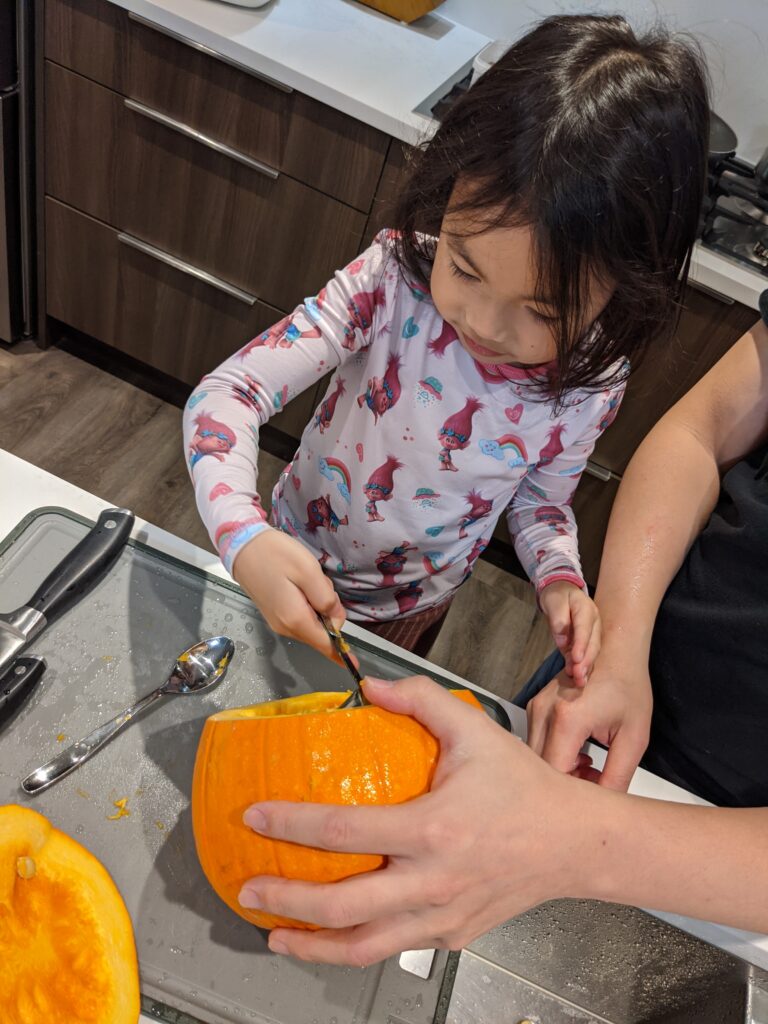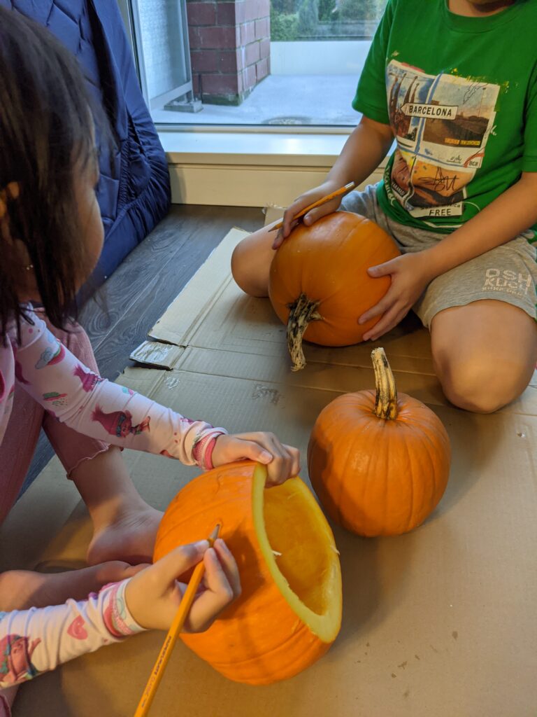 Đây là lần đầu tiên gia đình tôi chơi Halloween ở Canada! Mẹ và S đi mua rất nhiều quả bí ngô để trang trí, nấu ăn và để vẽ mấy khuôn mặt rất đáng sợ.