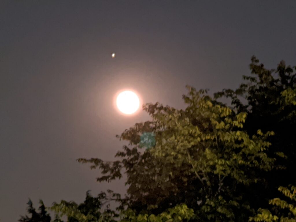 Yesterday was mid-autumm day in lunar calendar. Me and Z & C and Mommy went to the roof top I saw a full moon!!! Z said the tiny star next to it might be Mars or Venus.