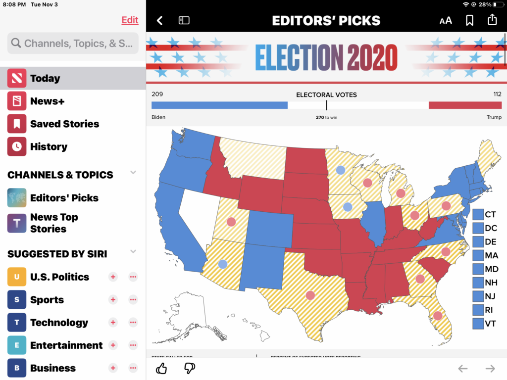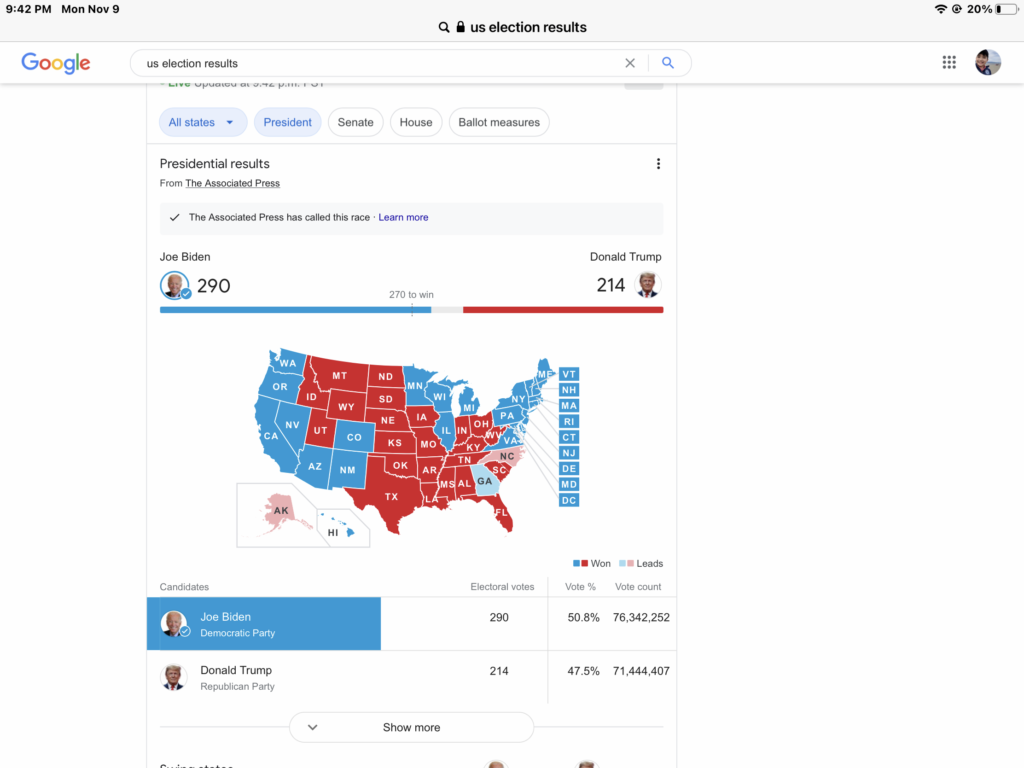 Ok, now Biden is winning probably this’ll go on for a few more hours. I think. And I carry on with my class. And the next time I checked…