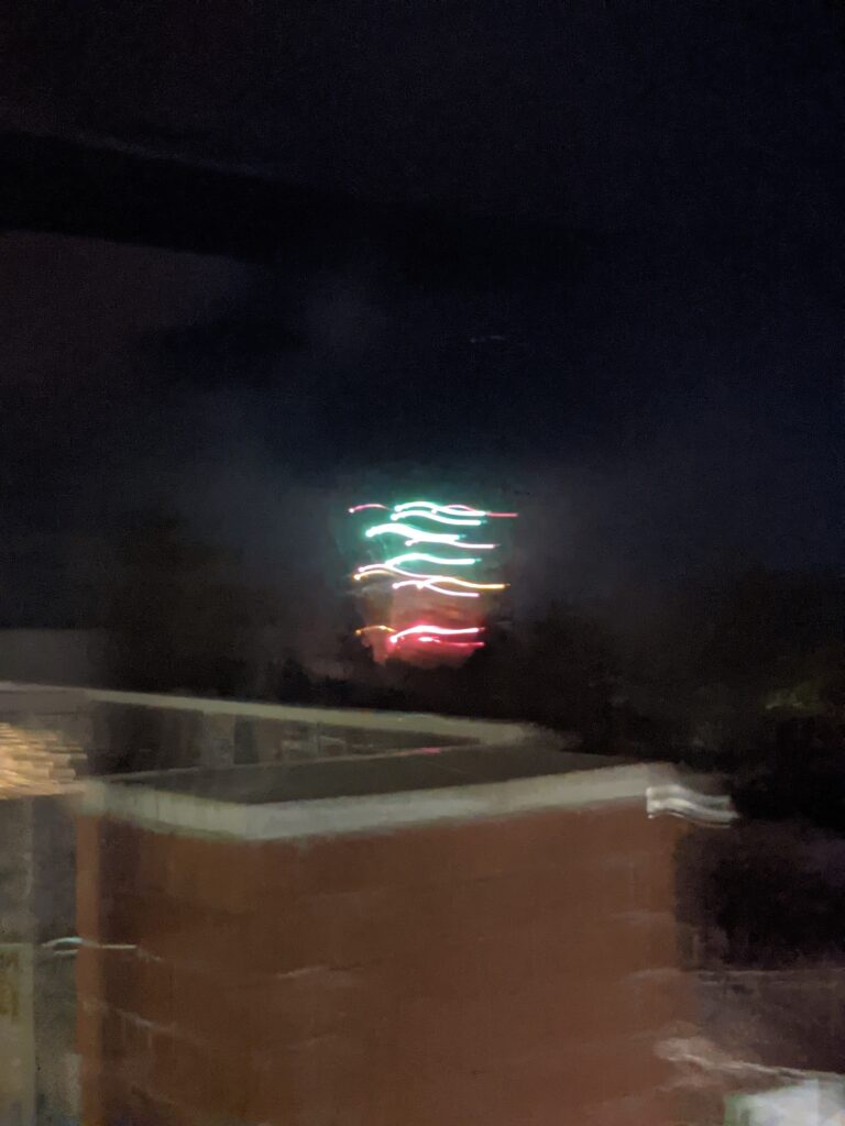 Hôm nay cũng có pháo hoa nó nghe giống như súng lắm. Và…gia đình tôi đã phát hiện là nó đến từ community center, thì tôi đi đến công viên thì thấy có môt đống anh chị đứng ở đấy. Hình như là anh chị bắn pháo hoa và vài giây sau tôi khóc. Vì tiếng nổ to quá và tôi sợ nó sẽ bay vào người tôi.