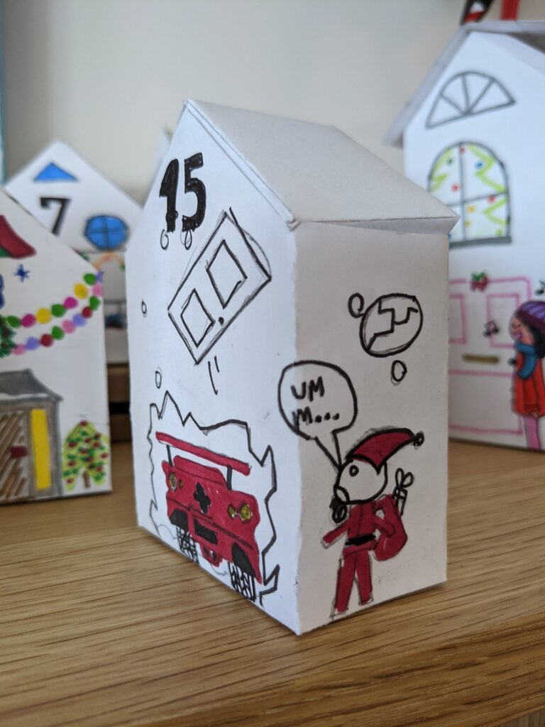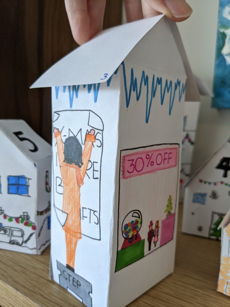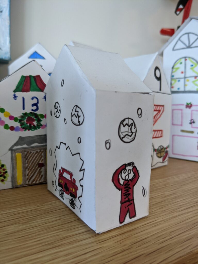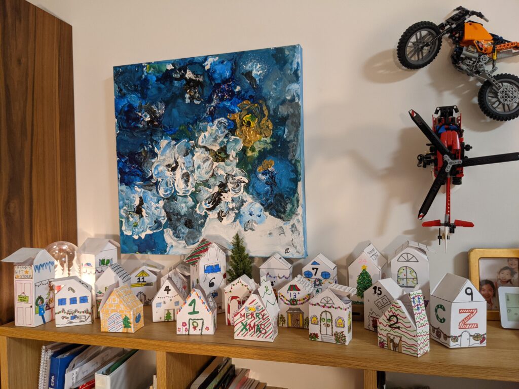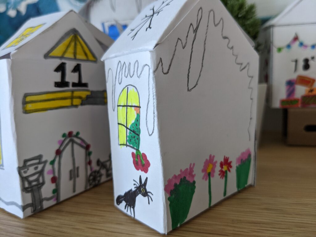 Trong quá trình này, tôi thấy rất hài lòng với lịch mùa vọng bằng những ngôi nhà giấy của gia đình tôi. Mình chỉ có 3 ngày trước khi tháng 12, may quá là đã kịp xong!