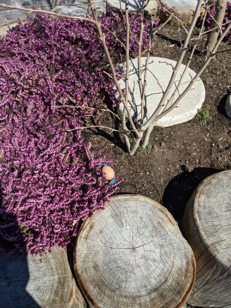 At Last! My siblings and I were called outside to find the eggs. There are 9 eggs in total, meaning that there should be 3 for each person. Immediately, I went and briefly looked around the entire garden, trying to spot the obvious eggs. Within a matter of time, I found the first egg! Surie found one quickly afterwards (with the help and subtle hints from mom (; ).