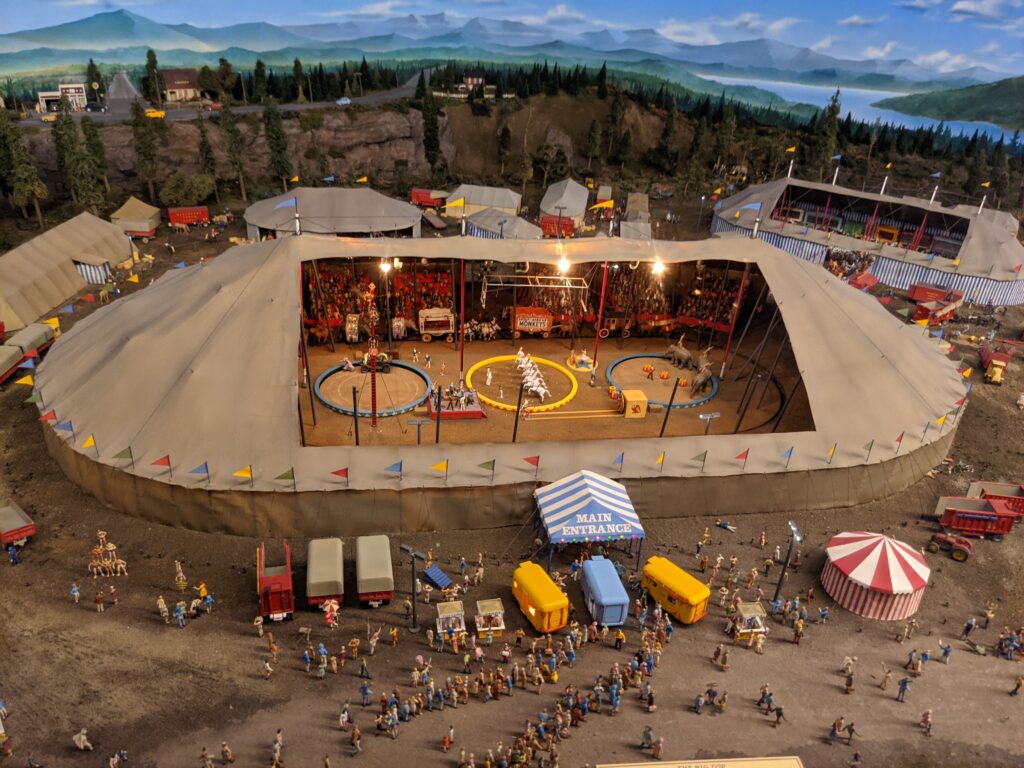 There are lots of themes and topics for the displays made in Miniature World. Some of the ones I remember were: Circus World, War and Battle, Space, Fantasy/Fairy Tales, Camelot, The Trans Canada Railway, Victorian era themed, The Classic Car Rally, and Dollhouses! Not only are the displays and exhibits extreme detailed and made to look realistic, on most booths are buttons in which you can press and interact with the display. For example: In the Car Rally, a button can move a car, open a door, turn on a TV and much more! Which is really fun and entertaining because the audience gets to interact with the display, which makes it turn into life!