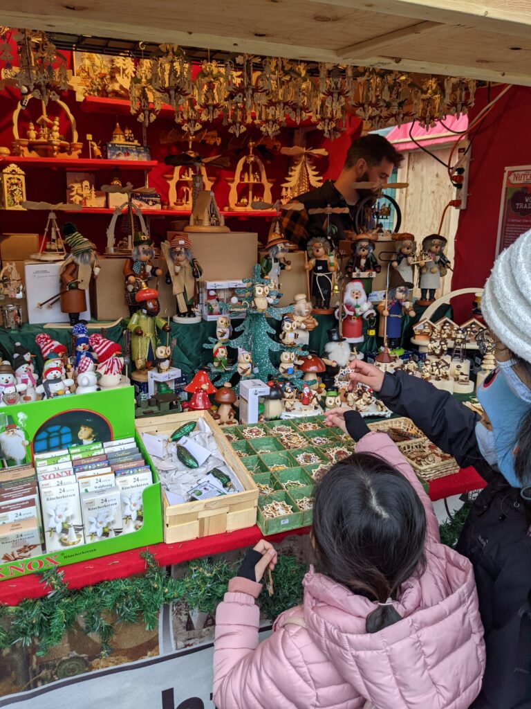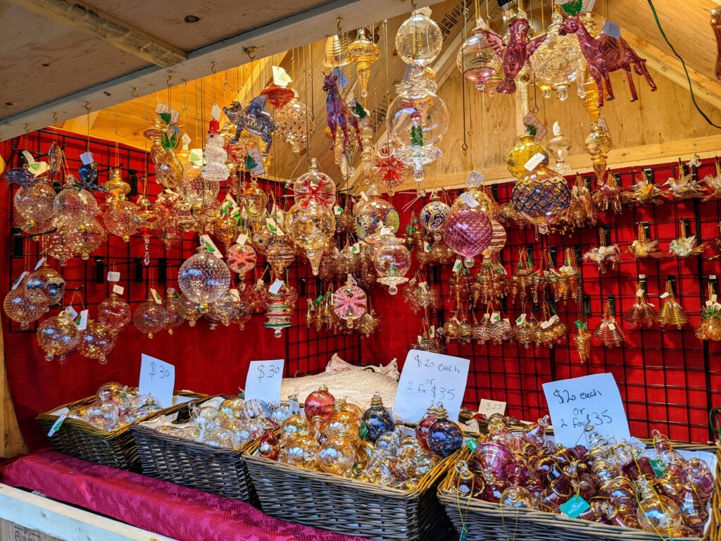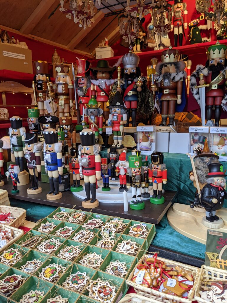 Nutcrackers là một món đồ trang trí rất hay được bán vào dịp giáng sinh. Những đồ kẹp hạt dẻ làm bằng gỗ được bán ở đây khá đắt tiền, bởi chúng được làm ra ở Đức. Phần lớn chúng được sơn màu đỏ hoặc xanh da trời, nhưng cũng có nhiều màu sắc vui vẻ khác. Cũng có nhiều quầy bán những vật trang trí làm bằng thủy tinh. Hoạ tiết trên những món đồ trang trí rất xinh xắn và thật chi tiết.