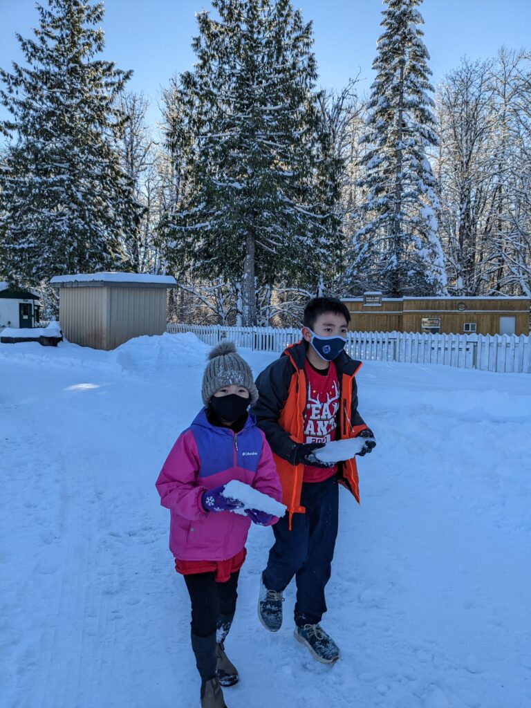 So the first photo is me in the parking lot playing with snow, and the other is me and my brother getting ice boards