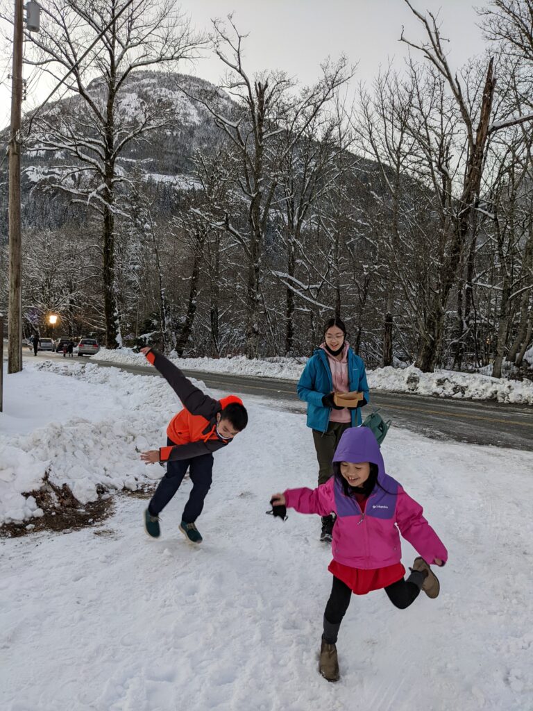 It was at Squamish BC. It probably took us 2 hours to get there. When we got out of our car in the parking lot, and guess what? It was full of snow. We found ice blocks that are flat (like ice boards) and it was so much fun to break them with a karate chop.
