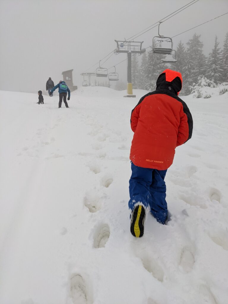Chúng tôi đã chọn được một ngày hoàn hảo để đi. Mùa trượt tuyết bắt đầu cuối tháng nên lúc chúng tôi tới không có ai trên đó 🚫👥. Nó cảm giác như mẹ mua cả ngọn núi cho gia đình mình thôi. Một điều ngạc nhiên là hôm đó có tuyết rơi ❄️🌨️. Giờ này rất hiếm có tuyết rơi. Các bạn nhớ là ở thành phố chưa có tuyết, đó là trên núi!