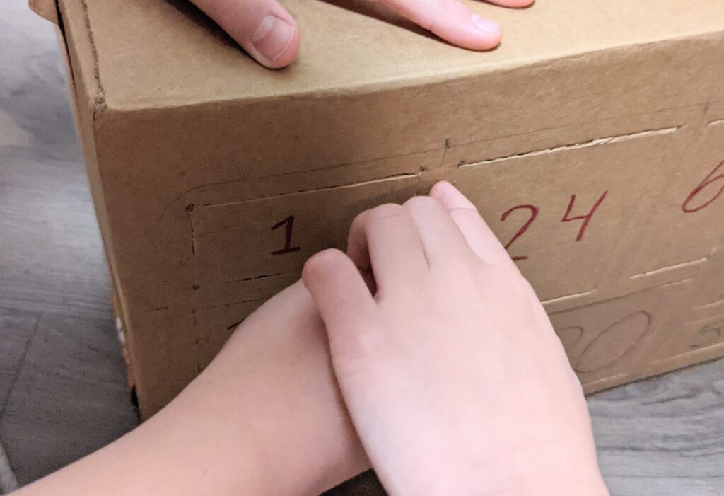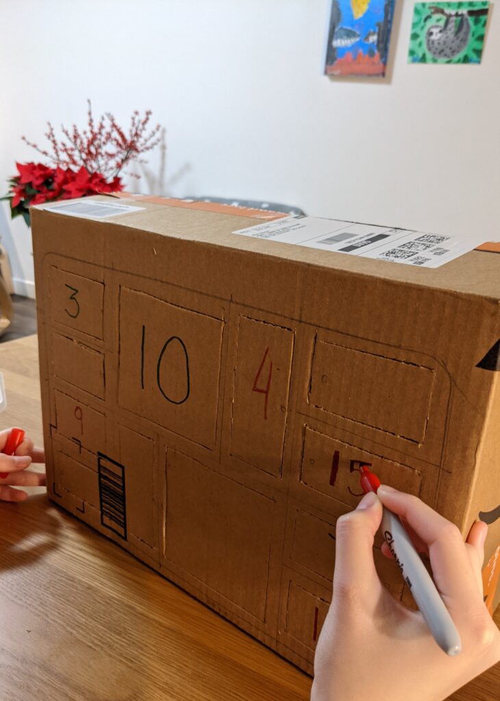 - use your red and green markers, write down the dates of December till Christmas (1-24/25)