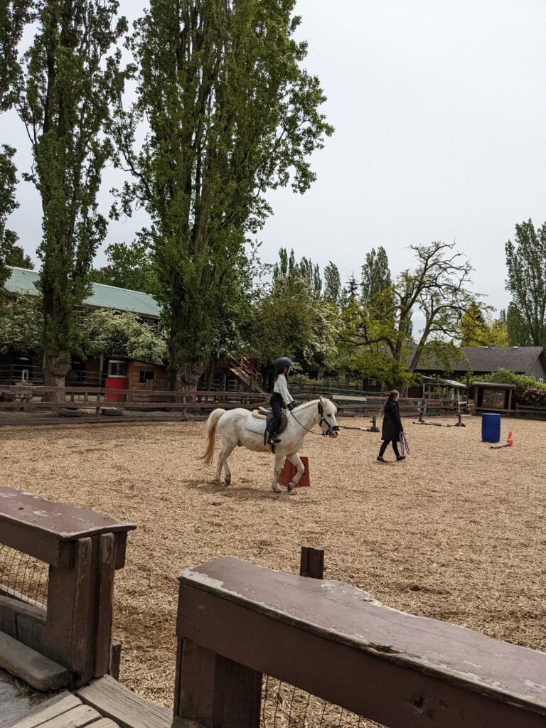 And I forgot to tell you this, I had a riding lesson before the extreme air park party. It was the best lesson ever! I got to ride my favourite horse and I gotta wear my riding everything! I did my favourite kind of trotting, everything was good.