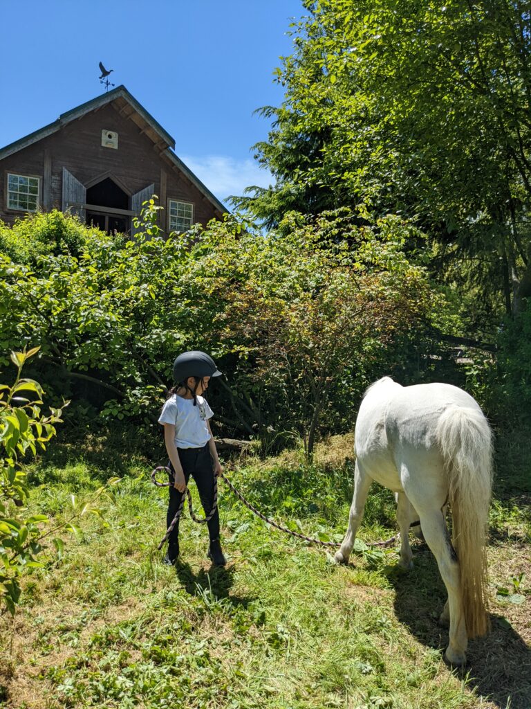 So at first I didn’t feel the difference grade two and grade one. It felt the same for the very first days. Next it was meeting my new riding instructor. She has a horse named Flicka. She showed me and my friends her riding in a field & arena. Oh and another great thing was finding a pony friend, Magic! (I ended up getting to know him really well!) I got to ride him every week and so on. Then the best thing was… CANTERING!!