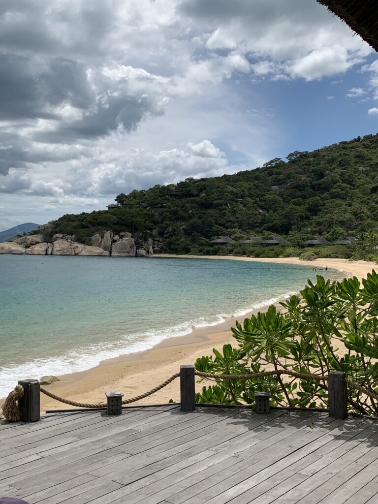 Ở Nha Trang, tôi được hưởng thụ cảnh biển với hai khách sạn khác nhau; Six Senses Ninh Văn Bay và VinPearl Nha Trang. Six Senses là một khách sạn có phong cách về thiên nhiên. Ở đấy, từ 11-4 giờ, có kem miễn phí! Nên hàng ngày tôi được ăn 2-3 kem ốc quế, hihi. Cảnh ở đấy cũng thật đẹp luôn. Thật lâu lắm rồi tôi mới được đi chơi ở những bãi biển Việt Nam, đi về vô cùng là thỏa mãn. Về đây đúng là thích.