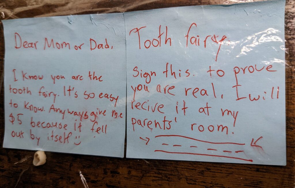 CON BIẾT MẸ HAY LÀ BỐ LÀ TIÊN RĂNG, ĐƯA NHIÊN RÔI!!! DÙ SAO, ĐƯA CON $5 VÌ NÓ TỰ RƠI RA 🙂