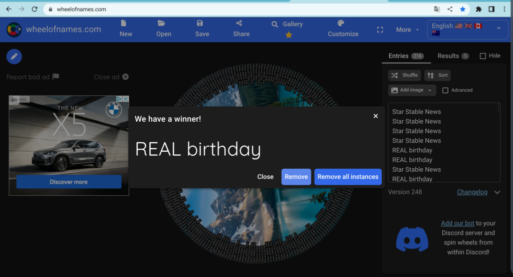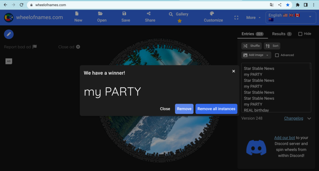 AND…. DRUM ROLL PLEASE… OUR SOLUTION IS WHEEL OF NAMES DOT COM! Oh, my bad, I already showed a picture!! Sorry!! Well, as you can see, I’m going to talk about my PARTY first.