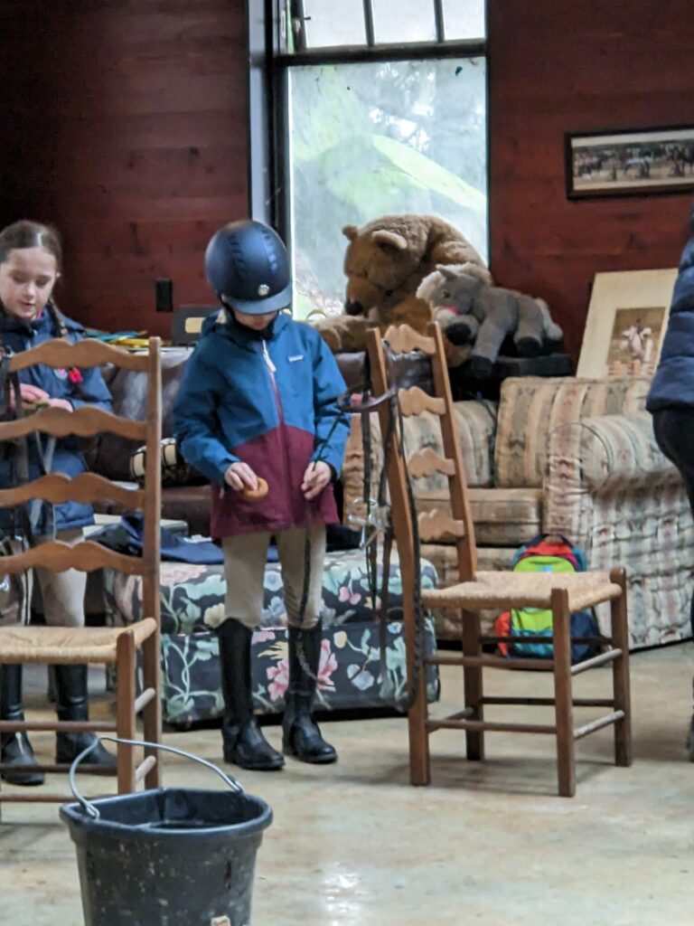Okay. So. I arrived at the barn… OKAY, let’s make it less intense. So, I arrived at the barn. I was there to groom and tack and get ready for the show like, 3 hours early… Anyways, we were assigned horses for the show, so each horse had a group getting him ready. First we had to clean some bridles and saddles. That was fun!!